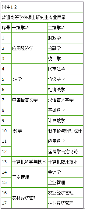 硕士研究生(一级学科):应用经济学、中国语言文学、法学、数学、农林经济管理、计算机科学与技术、工商管理。