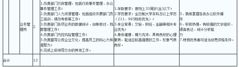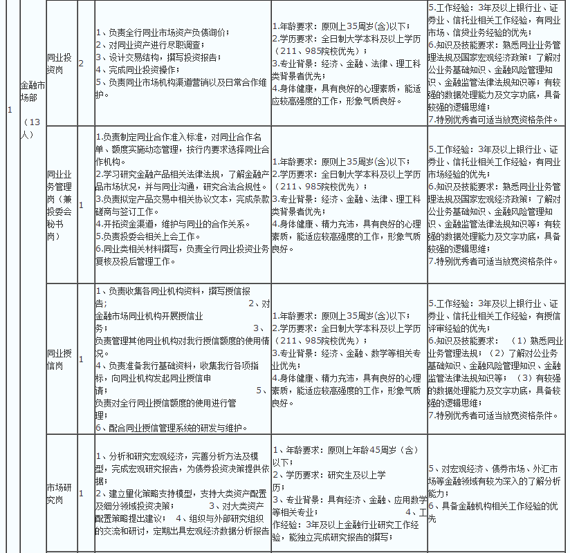 5.同业业务管理岗(兼投委会秘书岗):1名