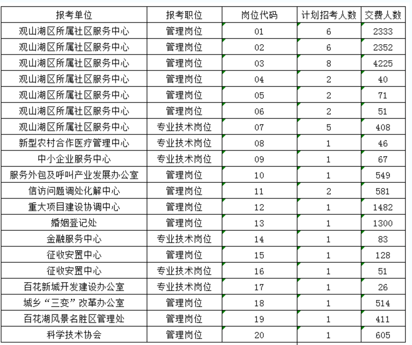 观山湖区2019年公开招聘事业单位工作人员报名已结束,经统计,现将报名情况公布如下: