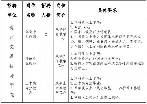贵州交通技师学院2024年公开招聘编制外工作人员方案 贵州交通技师学院(贵州省交通运输学校)是经贵州省人民政府批准成立的贵州省交通运输厅所属公办全日...