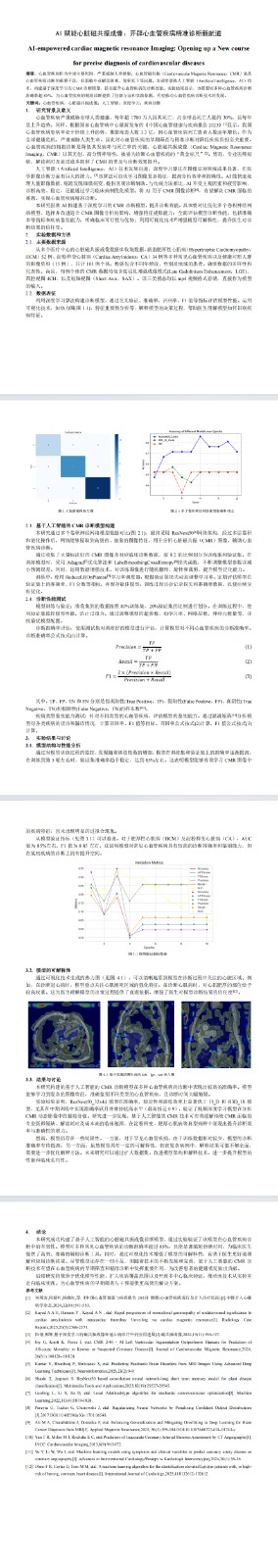 项目描述:针对临床心血管疾病筛查需求,主导设计智能分析系统,通过数据思维重构全链路分析流程。将临床需求转化为 32 维生理特征分析任务,建立量化评估体系,设计自适应标准化流程,利用傅里叶变换过滤 MRI 运动伪影噪声,提升数据质量。构建 ResNet-LSTM 混合模型架构,结合贝叶斯超参优化与标签平滑技术改善类别不平衡问题,通过 Adagrad 优化器配合动态学习率实现自适应训练,最终将模型准确率从 37.62% 提升至 85.04%。